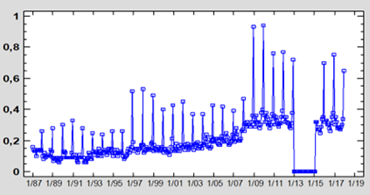 En general, las predicciones ‘ex post’ de los consumos presentan una alta coincidencia con los datos en el período 1987-2017. Solamente encontramos un tramo en el cual el modelo no actúa correctamente, era de suponer ya que coincide con el tramo de meses para los cuales el Ministerio no pudo proporcionar datos, el resto de las predicciones son correctas, tanto anteriores como posteriores a este tramo anómalo. El error de predicción es, de la misma manera, aceptablemente bajo, estable y aleatorio en todos los casos para el horizonte de predicción.