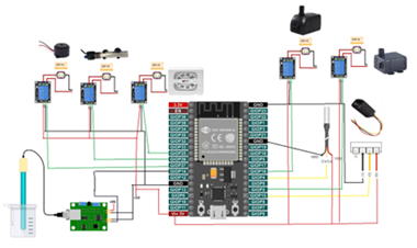 Para la interconexión entre los elementos y la interfaz del sistema, se utiliza el reconocimiento serial, lo cual facilita la comunicación entre la red WiFi-ESP32 y la interfaz IoT, permitiendo la recepción de datos de los dispositivos vinculados. Esta estructura permite el control de variables críticas como la temperatura, donde el sistema analiza los niveles registrados para activar mecanismos correctivos: si la temperatura supera los 20°C, el ventilador se enciende para reducirla, y si cae por debajo de 15°C, el calefactor se activa para mantenerla en un rango óptimo.