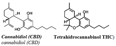 Figura 1. Estructura química del cannabidiol (CBD) y el tetrahidrocannabinol (THC). Fuente: (Anchesi et al., 2023).